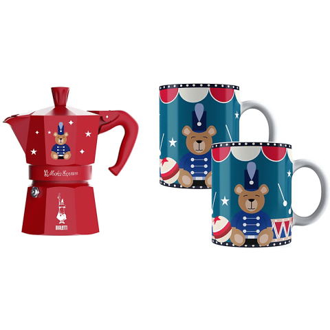 1 kép Bialetti Moka Express 6 adagos kotyogó + 2 db bögre - piros GD25 Kávéfőző