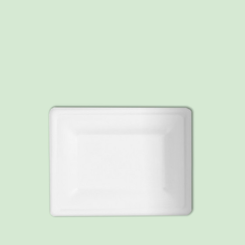 Lebomló, fehér, téglalap alakú cukornád tányér.Remek választás meleg, vagy hideg ételekhez egyaránt.Növényi alapanyagokból készült díjnyertes minőségű termék.Ipari körülmények között komposztálható.