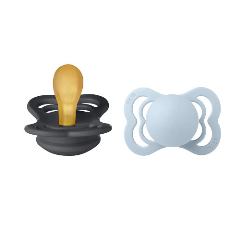 BIBS – Supreme cumi – több méretben – grafit/pasztellkék szett A csomag két megegyező méretű, különböző színű cumit tartalmaz. A BIBS Supreme cumik szimmetrikus, pillangóhoz hasonló cumipajzsa nagyon könnyű és rendkívüli strapabíró. Speciális, lyukacsos k