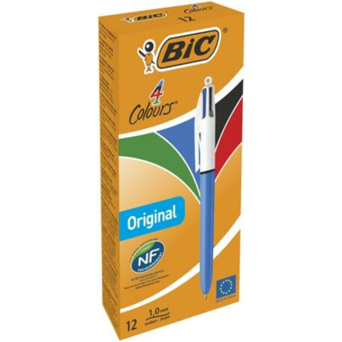 A Golyóstoll, 0,32 mm, nyomógombos, négyszínű, BIC 4 Colours Original (BC982866) Kék, fekete, piros, zöld! -műanyag tolltest -4 írásszín egy tolltestben, nem szükséges az írószereket cserélgetni -tiszta, precíz íráskép -nyakba akasztható -NF Environneme