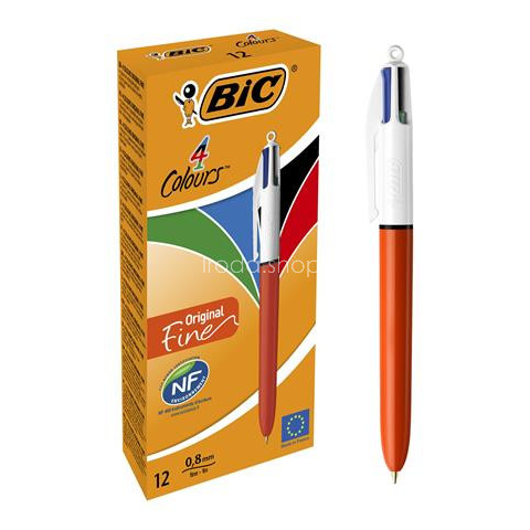 Golyóstoll, 0,3 mm, nyomógombos, négyszínű, BIC 4 Colours Fine Ideális választás iskolások és művészek számára egyaránt! -éles és tiszta íráskép -piros, zöld, fekete, kék szín egy tolltestben -időtálló design -golyóátmérő: 0,8 mm -írásvastagság: 0,3 m