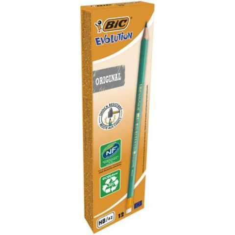A Grafitceruza radírral, HB, hatszögletű, BIC Evolution Original (BC8803323) A BIC Evolution Original grafitceruza egy műgyantából készült ceruza, mely nem tartalmaz fát. -az egyedülálló csúcstechnológiás gyártási eljárásnak köszönhetően ütésálló, rágásá