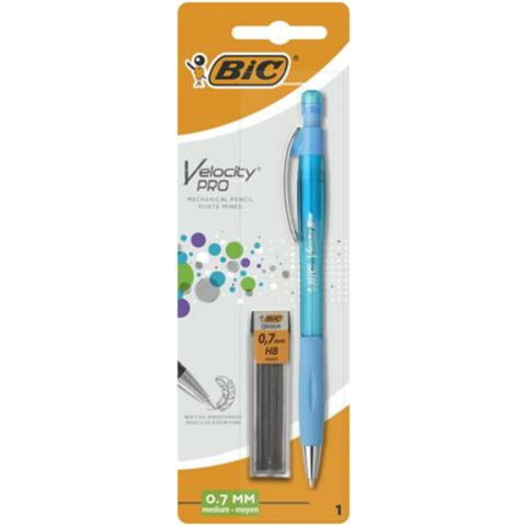 A Nyomósirón és grafitbél, 0,7 mm, BIC Velocity Pro (BC503457) BIC Velocity Pro nyomósirón -ergonómikus kialakítás, gumírozott markolat -erős, fém klip -12 db 0,7 mm HB-s grafitbéllel beépített radír a kupak alatt -a nyomósirón testszíne vegyes (szürke,