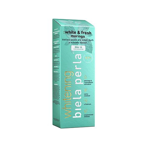 Fogkrém - fehérítő, fluoriddal, mentolos ízű, 75 ml kiszerelésben kapható A BIELA PERLA White Fresh Moringa 75 ml fogkrém hatékony összetevőket és gyógynövénykivonatokat kombinál, amelyek hosszan tartó friss leheletet és szájápolást biztosítanak. Moringa olajat tartalmaz, a