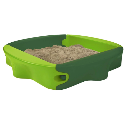 Masszív, stabil, UV védelemmel ellátott, gyorsan összeszerelhető műanyag homokozó zöld színben. Mérete: 138 x 138 x 27 cm.