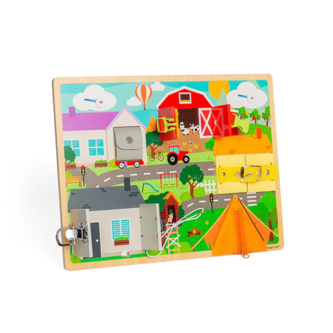 1 kép Bigjigs fa készségfejlesztő matatófal falus