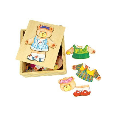 2 kép Bigjigs Fa öltöztető puzzle dobozban - Mackó néni