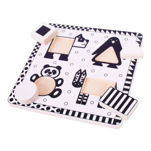 Bigjigs fa puzzle Fekete-fehér formák I. 4 db