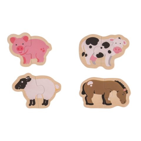 Bigjigs fa puzzle Haszonállatok 8 db puzzle, kirakós árgrafikon