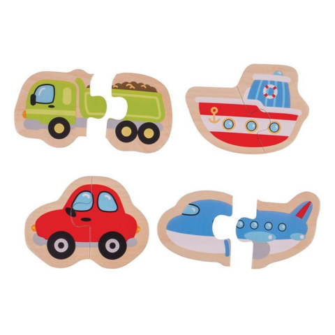 Bigjigs fa puzzle Járművek 8 db puzzle, kirakós árgrafikon