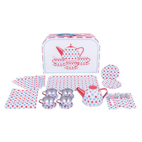 Bigjigs játék pöttyös teáskészlet tárolóval
