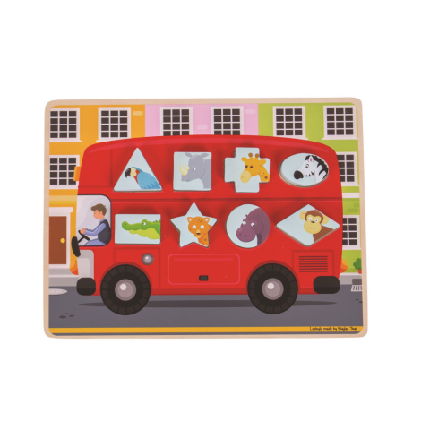 Bigjigs puzzle Busz állatokkal 8 db puzzle, kirakós árgrafikon