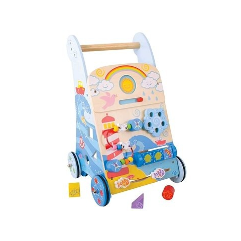 Járássegítő - gyerekeknek, aktív, fa, ajánlott 1 éves kortól, 2 az 1-ben, csúszásgátló kerekek, interaktív panel a csomag része, mérete 52 × 33 × 33 cm (Ma×Sz×Mé), többszínű A neves Bigjigs Toys interaktív járókája tökéletes segítőtárs gyermeked első lépéseinek megtételéhez. A járóka egy éves kortól ajánlott. Növeli a baba egyensúlyérzékét, továbbá javítja a motoros készs