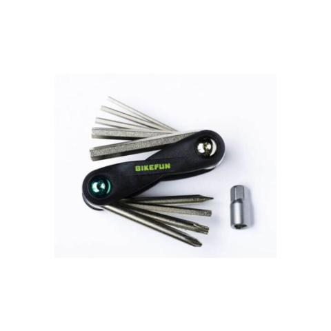 A legfontosabb imbuszkulcsokat, féktárcsa Torx kulcsot és csavarhúzókat magába foglaló multi tool /zseb-szerszámkészlet
