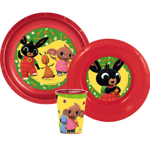 Bing étkészlet, műanyag -BPA Mentes -Származási ország: Spanyolország -A termék környezetbarát, újrahasznosítható anyagból készült a Föld védelmében. Csomagolás nélkül! Nem mikrózható! A szett tartalma: 1 db mélytálka 1 db lapostányér 1 db pohár