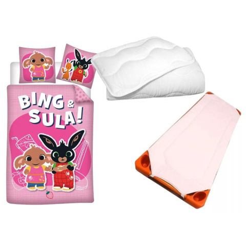 Minden gyerkőcnek szüksége van néhány “alapfelszerelésre”az oviban, ezért mi csomagba raktuk, hogy megkönnyítsük az anyukák dolgát. Bing ovis méretű gyerek ágyneműhuzat garnitúra: A textília a mosás során nem engedi a színét, megtartja a huzat erede