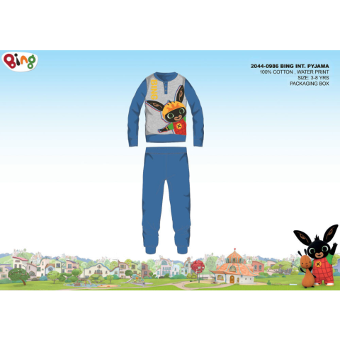 1 kép Bing Téli pamut interlock gyerek pizsama - Bing nyuszi - középkék - 104