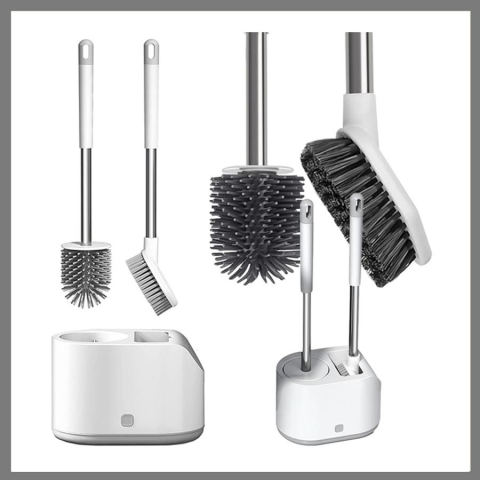 2 db szilikon WC kefe készlet 27144DUPLA ÉS FALRA SZERELT KEFE -- WC, fürdőkádak tisztítására, minden üveg-műanyag kerámia felületre alkalmas. A fali kampóval sima falra vagy WC-tartályra is felakaszthatja, vagy a padlóra helyezheti. Egy pár öntapadó fali kampóval, amely falra szerelhető, így több helyet takaríthat meg a fürdőszobábanMÉLYTISZTÍTÁS -- puha TPR anyaggal, nem károsítja a kerámia felületét .Ezzel a kefével a nehezen hozzáférhető helyeket is mél