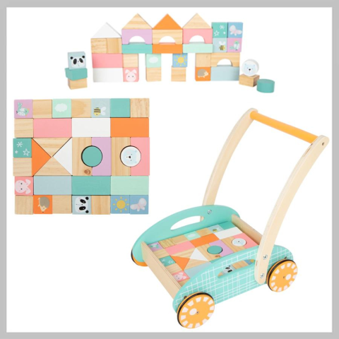 Baba járássegítő ügyesség fejlesztő kockákkal 11766Pastell Baba Tolóka – Fedezze fel a járás és építés örömét!Serkentse babája kíváncsiságát, felfedezőkedvét és kreativitását ezzel a bájos pastell színű baba tolókával! A kellemes, lágy árnyalatok felkeltik a kicsik figyelmét és ösztönzik érzékszerveik fejlődését.Építés és járás egybenA tolóka 34 darab fából készült építőkockával érkezik, amely számtalan lehetőséget kínál az alkot