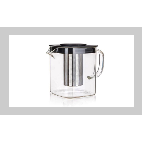 Banquet Üveg teáskanna szűrővel KIRSTY - 1,1 literes 49010205Különleges szögletes formájú üveg kávés/teáskanna fém szűrőbetéttel és műanyag tetővel, mely megkönnyíti a meleg, vagy hideg italok (házi limonádék) elkészítését. Gyógy- vagy gyümölcsteák elkészítéséhez is praktikus. Űrtartalma: 1100 ml.Cseppmentesen lehet belőle tölteni!Anyaga: hőálló üveg (100oC-ig).Mérete: 10,5x10,5 cm. Űrtartalma: 1100 ml. Mikróban nem használható, mosogatógépben n