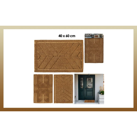 Dombormintás kókusz lábtörlő 40x60cm TX0179Ez a kókuszrostból és gumiból készült bejárati szőnyeg elengedhetetlen a bejáratához. Anyaga rendkívül hatékony a cipőfésülködéshez.