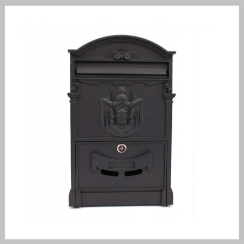 Fekete oroszlános postaláda SNK22Alumíniumból készült postaláda hengeres zárral, elektrosztatikus térben festve, víz-, magas hőmérséklet- és korrózióálló. A postaládához rögzítőcsavarok tartoznak.A levelek postaládába történő elhelyezése a postaláda elején lévő nyíláson keresztül történik, és a nagy méreteknek köszönhetően A4-es borítékok is behelyezhetők.A postafiókban lévő levelezéshez a nyílás alatt elhelyezett, 2 kulcsos hengeres zárral el