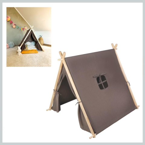 Játszósátor gyerekeknek 107x103x102cm 12552Ez a fából és szövetből készült beltéri játszósátor ideális menedéket nyújt kreatív játékórákhoz a gyerekszobában. A modern gyereksátor bőséges belső teret és az oldalablaknak köszönhetően kitekintést is kínál. Feltekerhető sátornyílással - függönynek is használható, mely oldalt pántokkal rögzíthető. Legyen szó találkozóhelyről barátok meghívására és közös játékra, plüssállatok és babák otth