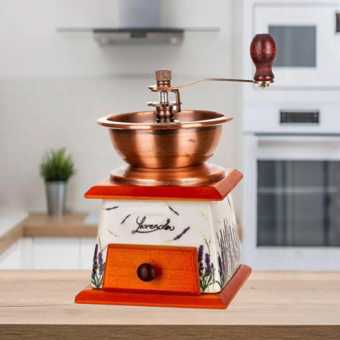 Kávédaráló LAVENDER 56405006LAVEnnek a kézi kávédarálónak kerámia teste van, fa kiegészítőkkel és fém tartállyal. A kerámia őrlő mechanikája a kívánt vastagságú őrlésre állítható.Paraméterek és specifikáció Magasság: 16,5 cm Mélység: 11,5 cm Súly: 0,6 kg Szélesség: 11,5 cm Szín: fehérA kép "illusztráció".