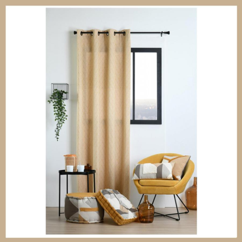 Készfüggöny 140x260 mustár R6D155001- Mosógépben maximum 30 fokon tisztítható- Méret: 140x260- Súly: 0,917 Kg- Anyag: 70% pamut 30% poliészter - Szín: mustárEz a modern és grafikus függöny kortárs hatást kölcsönöz dekorációjának.A kép illusztráció.