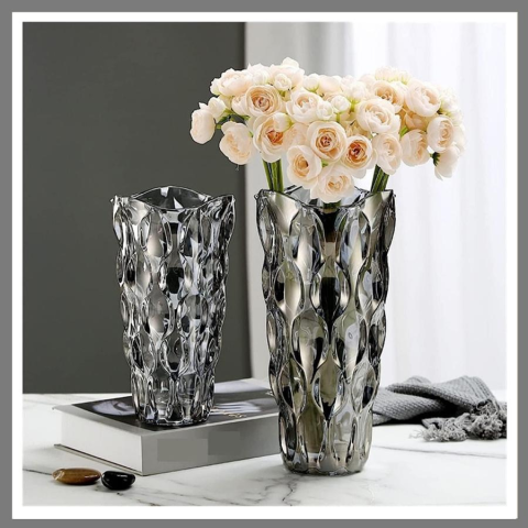 Modern üveg virágváza ZTWAZ04A francia stílusú dombornyomású váza kiváló minőségű, tiszta, Még ha nem is virágokkal kombinálják, az elegancia és a klasszikusság csodálatos kifejezése.A váza alkalmas nagy csokor, friss virágok, művirágok, száraz virágok készítésére.Méretek:24 x 13 x 8 cmMérleg:1530 gAnyag:üveg