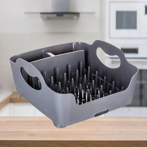 Műanyag edénycsepegtető myKITCHEN 32x36cm, antracit 55071781 BanquetModern és esztétikus edényszárító műanyagból. Praktikus kisebb konyhákba, de akár mosogatógép mellett is hasznos lehet, ha csak egy pár tányér, pohár kerül elmosogatásra. Az edénycsepegtetőn könnyedén elhelyezhető tányérok, poharak, és külön rekesze van az evőeszközöknek. Anyaga: minőségi műanyag. Mérete: 36x32 cm. Szín: antracit szürke.