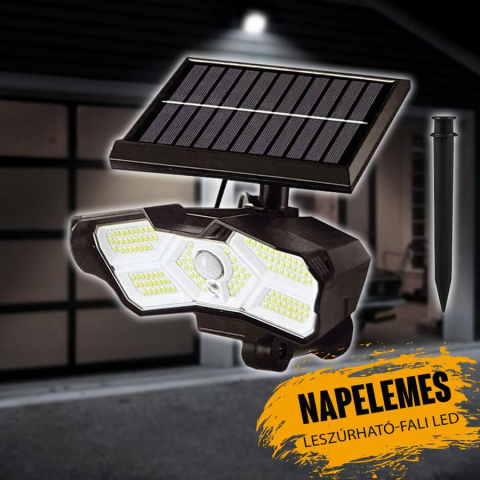 Napelemes leszúrható és fali LED lámpaAutomata napelemes töltésű fali lámpa. Költséghatékony és mindig bekapcsol amikor szükség van rá a mozgásérzékelő segítségével! Napközben feltölti a beépített akkumulátorát a napelemmel, így mindig készen áll az esti világításra! Amennyiben kell, ki is kapcsolható!Jellemzők: - Fényérzékelő és mozgásérzékelő - Mozgásra bekapcsol 100% fény, majd a mozgás megszűnése után teljesen kikapcsol. Több mód állítha