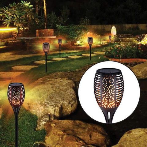 Napelemes Solar Led lámpa láng mintákkal 96 LED XF-6006Ez a napelemes lámpa ideális termék az udvarok megvilágítására. A kertek kellemes megvilágítása mellett a fáklya alakú kialakítás nagyon elegáns megjelenést kölcsönöz minden kertnek.A lámpa beépített akkumulátorral rendelkezik, amely napközben töltődik a hátulján lévő napelem segítségével.Műszaki adatok: - LED 1W - meleg sárga fény 2700K - autonómia: 8 óra - Maximális teljesítmény 1 W - névleges f