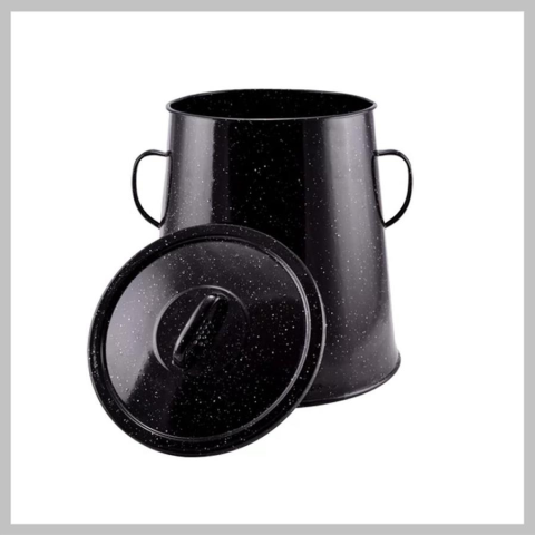 Perfect Home Zománcozott zsírosbödön 20 literes fekete 10459 Ez a nagy kapacitású, zománcozott vas zsírosbödön praktikus választás nagy mennyiségű élelmiszer, például zsír vagy savanyúság tárolására.Ideális nagyobb összejövetelekre a nagy méretének köszönhetően.Jellemzők:Anyaga:zománcozott vasMéretei:33,5 cm magas fedő nélkül, 37 cm magas fedővel, 25,5 cm felső átmérőjű, 33 cm alsó átmérőjű, 35 cm szélessége füllel együttŰrtartalma: kb 20 lSú