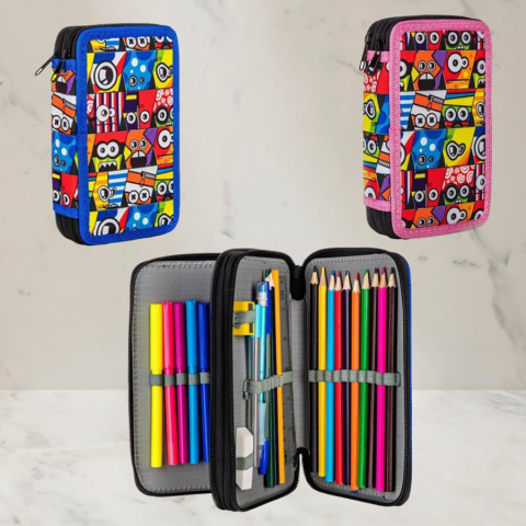 Tolltartó STINGRAY 13 x 19,5 cm, 2 fakkos, 08591239A 13 x 19,5 cm méretű, töltött emeletes tolltartó iskolás korú gyerekek nélkülözhetetlen eszköze, 2 színben választható. Minden emelet külön cipzárral zárható.A választott színt kérjük megjegyzésbe feltüntetni!A kép "illusztráció".