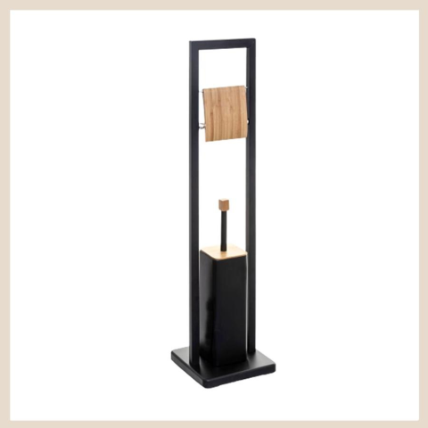 Wc papír tartó és WC kefe készlet matt fekete 160926BIdeális megoldás minden fürdőszobába, akár magánlakásban, akár nyilvános helyiségekben.A tartó fémből és természetes bambuszból készült, matt felülettel, eleganciát kölcsönözve a szaniternek. Ez egy állvány, amely nem igényel nehéz rögzítést vagy lyukakat a falon, és könnyen mozgatható, hogy megtisztítsa a helyet, ahol elhelyezték.Méretek:- magasság: 80 cm- szélesség: 20 cm- hossza: 20 cm