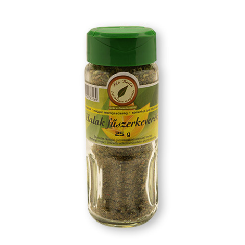 Bio Berta bio hal fűszerkeverék 25 g Összetevők: zöld fűszerpaprika*, kapor*, póréhagyma*, fokhagyma*, rozmaring*, bazsalikom*, citromfű*, homoktövis*, zsázsa*, cayenne-i bors*, feketebors*, curry*, snidling *, vöröshagyma*, szerecsendió*, csicsóka*