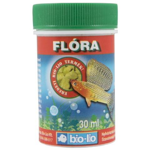Bio-lio flóra. Főleg algákból planktonokból készült növényevő és kiegészítő eleségként vegyestáplálkozású halak részére előállított lemezes szerkezetű eleség. Liofolizált növényi eleség alga és mindenevő halak számára. A feldolgozás során a beltartalmi érték nem változik tápértéke az élővel megegyezik. Rendszeres etetésével a halak megőrzik vitalitásukat. Kerülni kell az egyoldalú táplálást más természetes haleleség pl. vörös szúnyogl