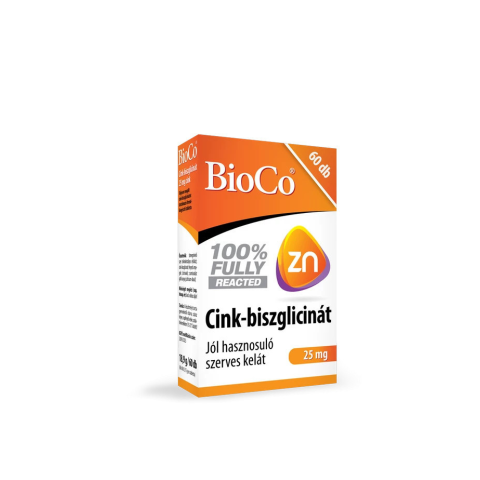 Teljesen reagált cink-biszglicinátot tartalmazó étrend-kiegészítő tabletta A BioCo® Cink-biszglicinát készítmény magas dózisban, 25 mg mennyiségben biztosít cink pótlást, mindössze napi 1 tabletta fogyasztásával. A készítményben új típusú, magas tiszta