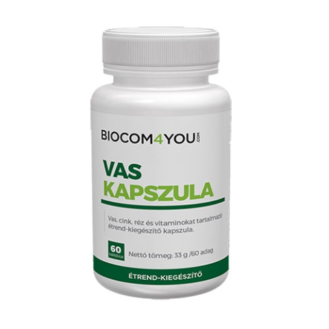 Vas, cink, réz és vitaminokat tartalmazó étrend-kiegészítő kapszula. Nettó tömeg: 33 g /60 kapszula