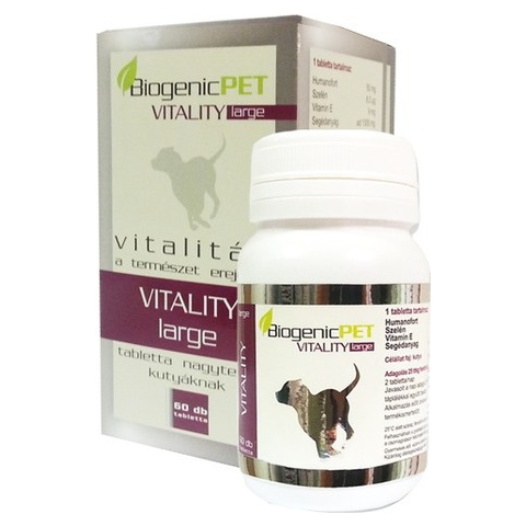 A BiogenicPET Vitality tabletta megvéd, regenerál, vitalizál. Vitalitás a természet erejével. Ezen állatorvosok által kifejlesztett gyógykészítménnyel biztosíthatod kistestű (BiogenicPET Vitality Small tabletta) vagy nagytestű (BiogenicPET Vitality Large tabletta) kutyád számára a szövetek megújulásához szükséges tápanyagokat. A készítményt alkalmazva felgyorsíthatod kutyád gyógyulási idejét, illetve megkönnyítheted életét.Táplálékkiegészítő