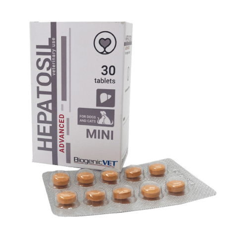 A BiogenicVet Hepatosil Advanced Mini tabletta 30 db speciálisan kis testű kutyák és macskák májvédelmére kifejlesztett táplálékkiegészítő. Hatóanyagai – köztük a szilimarin, a SAMe és az antioxidánsok – segítik a máj regenerációját, támogatják a méregtel