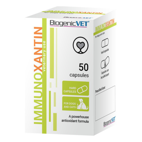 A BiogenicVet Immunoxantin kapszula 50 db célzottan támogatja a kutyák és macskák immunrendszerét, sejtvédelmét és általános ellenállóképességét. Magas antioxidáns-tartalma és speciális hatóanyagai ideálisak betegségek utáni regenerációhoz, idősebb állato