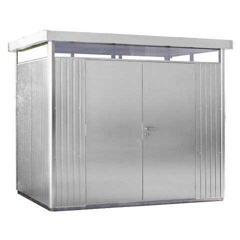 A Biohort fém szerszámosház modern, lapostetős, ipari formatervezők által tervezett termék. 4,6 m alapterületével helytakarékos, mégis elegendő helyet biztosít a kerti gépek, a kerti bútorok, a sportszerek és játékok, valamint az egyéb kerti eszközök számára. A fémházikó emellett nagyon stabil és hosszú élettartamú. Modern fém szerszámosház felső ablakokkal és duplaszárnyú ajtóval Az akrilüvegből készült felső ablakok elegendő fényt biztosítanak. Int