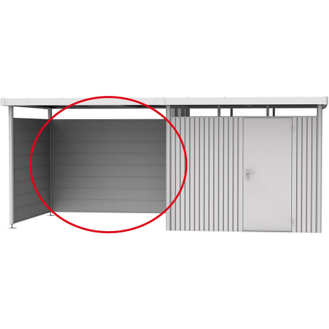 Tetszés szerint egy hátsó fal és/vagy egy oldalfal szerelhető fel a Highline szerszámos ház oldaltetőjére (min. méret: H2). A ház színeiben kaphatók.