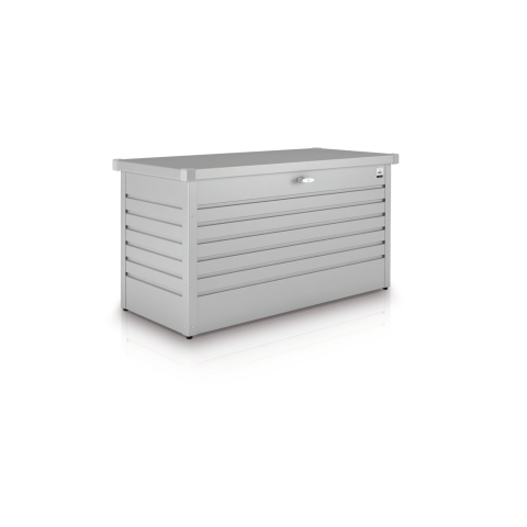 Az ezüstmetál színű Biohort 130 térfogata kb. 460 l és kiválóan alkalmas kerti eszközök praktikus tárolására. Tűzihorganyzott, poliamid égetett lakkozású acéllemezből készült, belső méretei 125 cm x 53,5 cm x 66 cm (Sz x Mé x Ma). A csavarok és a zsanérok rozsdamentes acélból készültek. A tárolódoboznak stabil, sima fedele van, amely a fedél kényelmes kinyitása érdekében gázrugóval rendelkezik. A rugó emellett megakadályozza, hogy a fedél véletlenül le