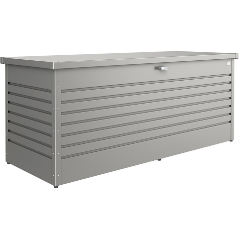 A Biohort FreizeitBox tökéletes kültéri tárolódoboz minden olyan tárgy tárolására, amelyeknek eddig nem talált helyet. Ideális ülőpárnák, nyugágyak, összecsukható székek, játékok, sport- és kempingfelszerelések tárolására. Öt méretben - 100, 130, 160, 180 és 200 - és öt színváltozatban - fehér, kvarcszürke, sötétszürke és bronz - kapható. A tárolódoboz kétutas, T-fogantyúval ellátott hengerzáras zárószerkezettel és kényelmes gázrugós ajtónyit