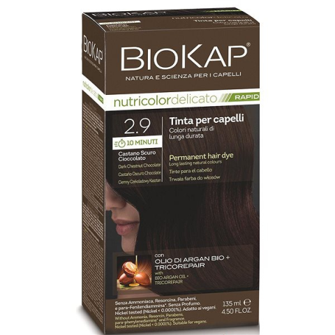 Hajfesték - barna árnyalat, tartós típus, folyékony állag, természetes és vegán termék, ammóniamentes és parabénmentes, teljes fedést biztosító és színélénkítő hatás, minden hajtípusra, kesztyű, applikátor, hajápoló és használati útmutató a csomagban, 135 ml űrtartalom Kíméletes természetes hajfesték, amely sokkal gyorsabban hat, mint más hasonló termékek. Az olasz Bios Line gyártó új szabadalmának köszönhetően mindössze 10 percre van szükséged a