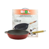 Biol Mély zománcozott öntöttvas serpenyő levehető fa nyéllel 28cm piros edény termékleírás