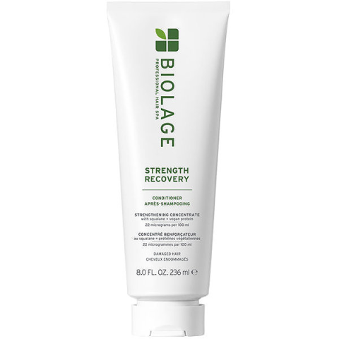 Kondicionáló - kiöblítendő, hidratáló, tápláló és erősítő hatás, minden hajtípusra és sérült hajtípusra A BIOLAGE Strength Recovery hajápoló termékcsalád elsősorban száraz és sérült hajra ajánlott. A kondicionáló rendszeres használat mellett akár 73%-kal csökkenti a hajszálak töredezését, és háromszor e